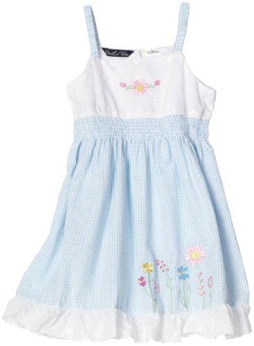 So La Vita Girls 2-6X Toddler Seersucker Eyelet Yoke Dress, Blue, 4T