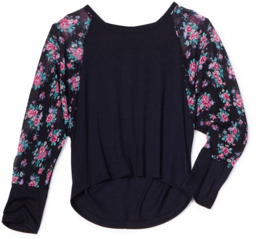 Paperdoll Girls 7-16 Knit Chiffon Top, Navy, X-Large (16)