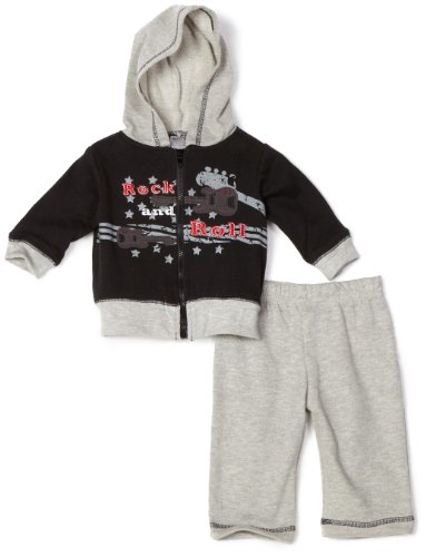 Baby Essentials Baby-boys Newborn 2 Piece Rock and Roll Jog Set, Black/Grey, 3-6 Months