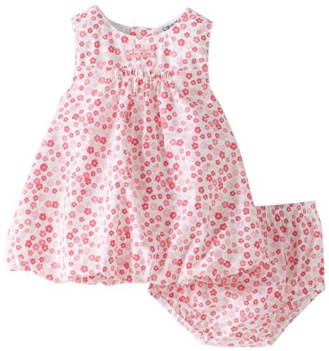 Calvin Klein Baby-girls Newborn Sleeveless Dress With Panty, Pink Print, 0-3 Months