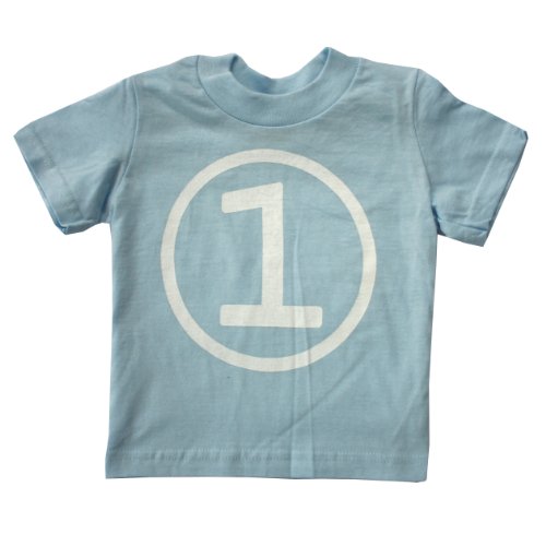 Our little one just turned two, and to celebrate we worked together to create the perfect little line of birthday tees. This is our number 1 tee. This super soft light blue short sleeve t shirt is screen printed by hand in white ink. This piece is part of our new line of original apparel available exclusively at our Happy Family shop. We have the following sizes available: