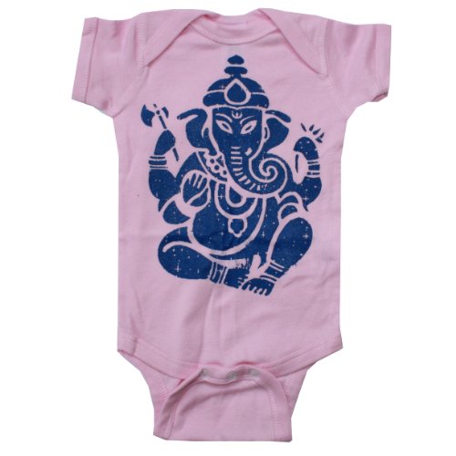 Ganesha, also spelled Ganesa or Ganesh and also known as Ganapati, Vinayaka, and Pillaiyar, is one of the best-known and most worshipped deities in the Hindu pantheon. His image is found throughout India. Devotion to Ganesha is widely diffused and extends to Jains, Buddhists, and beyond India. Although he is known by many other attributes, Ganesha's elephant head makes him easy to identify. This is a super soft, 100% cotton, baby bodysuit screen printed in royal blue ink. We have the following